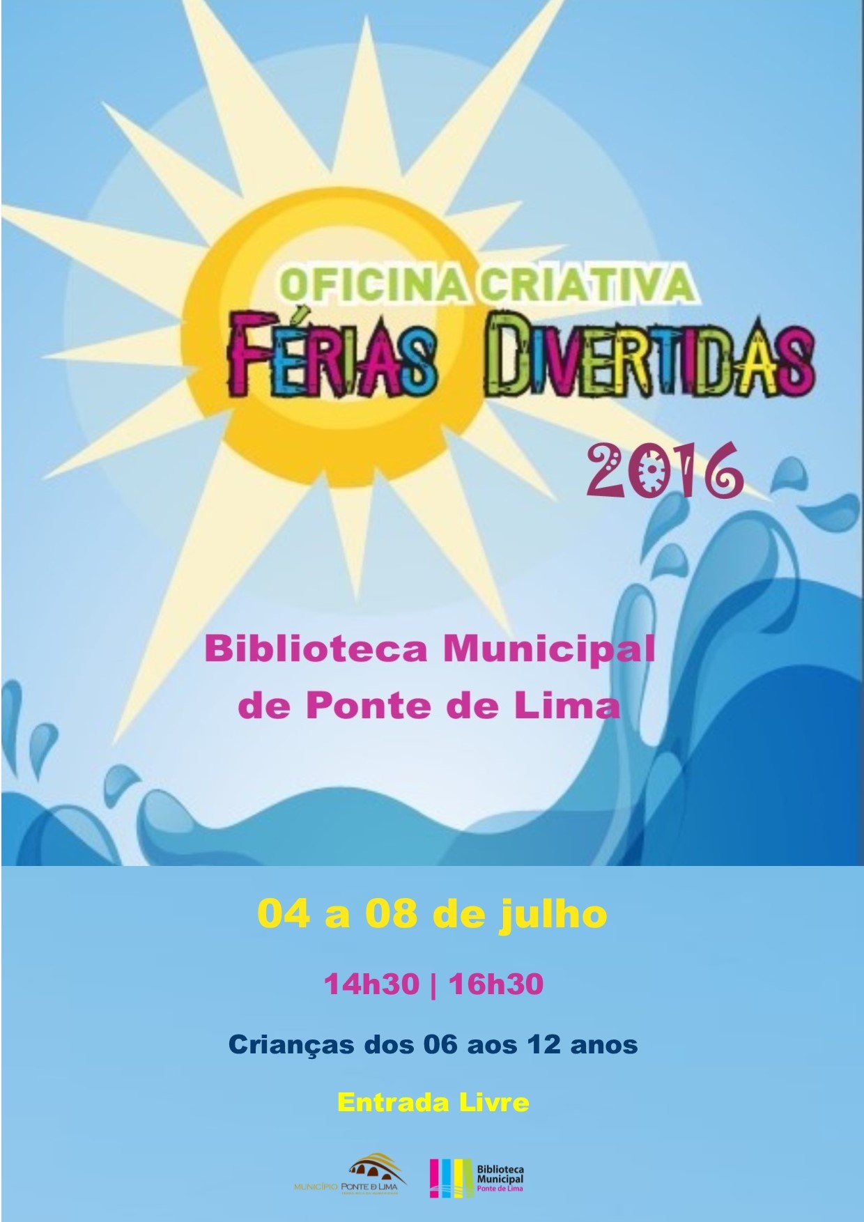 A Biblioteca Municipal de Ponte de Lima vai dinamizar de 04 a 08 de julho a Oficina Férias Divertidas de Verão, destinada a crianças dos 06 aos 12 anos, no período temporal das 14h30m às 16h30m.