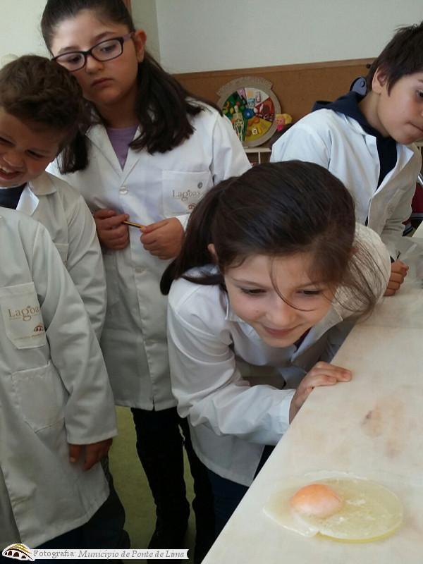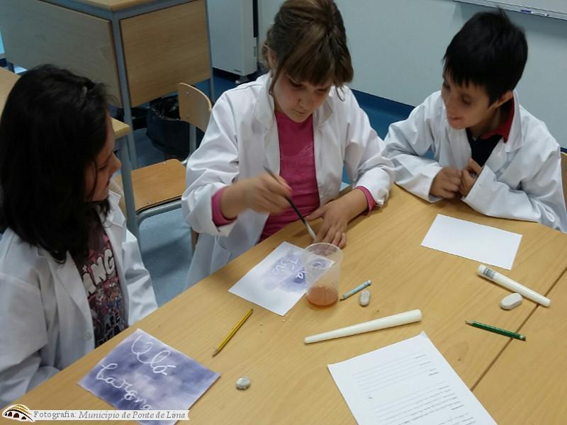 Assim, as turmas realizaram três de várias experiências: desaparecimento mágico, escrita invisível, candeeiro de lava, balão mágico, telefone topo de gama e fritar um ovo sem calor.