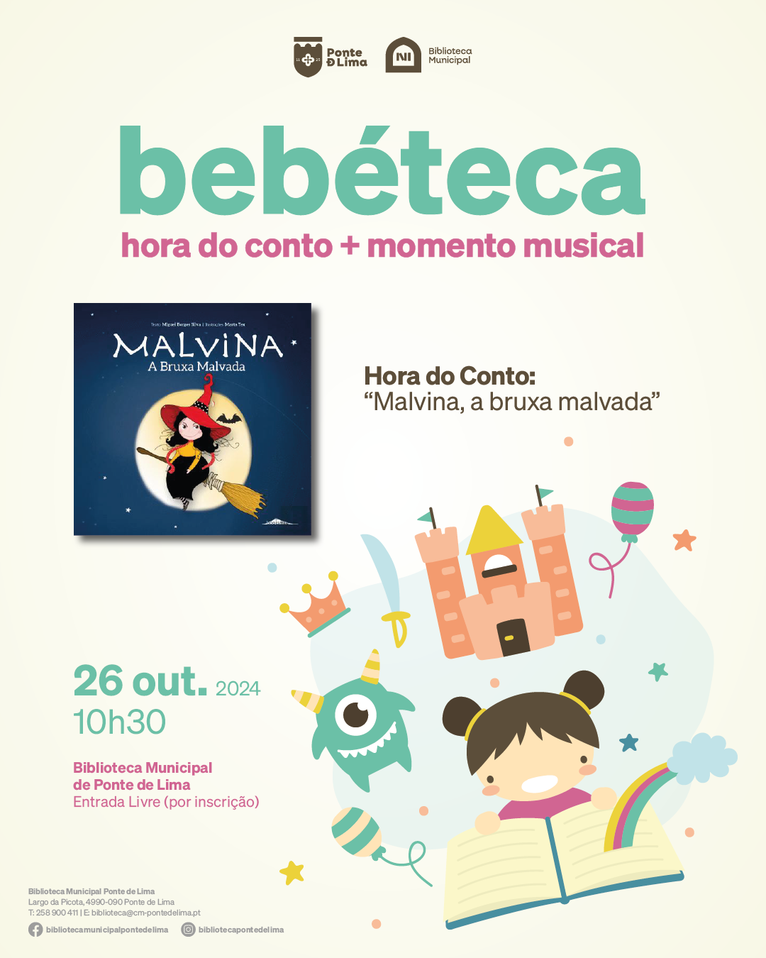 Para participar na Bebéteca será necessária inscrição prévia (gratuita), através do correio eletrónico biblioteca@cm-pontedelima.pt
