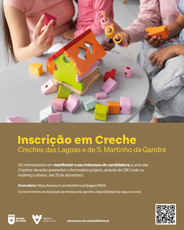 O Município de Ponte de Lima reforça que o preenchimento da declaração de interesse não garante a disponibilidade da vaga na Creche.