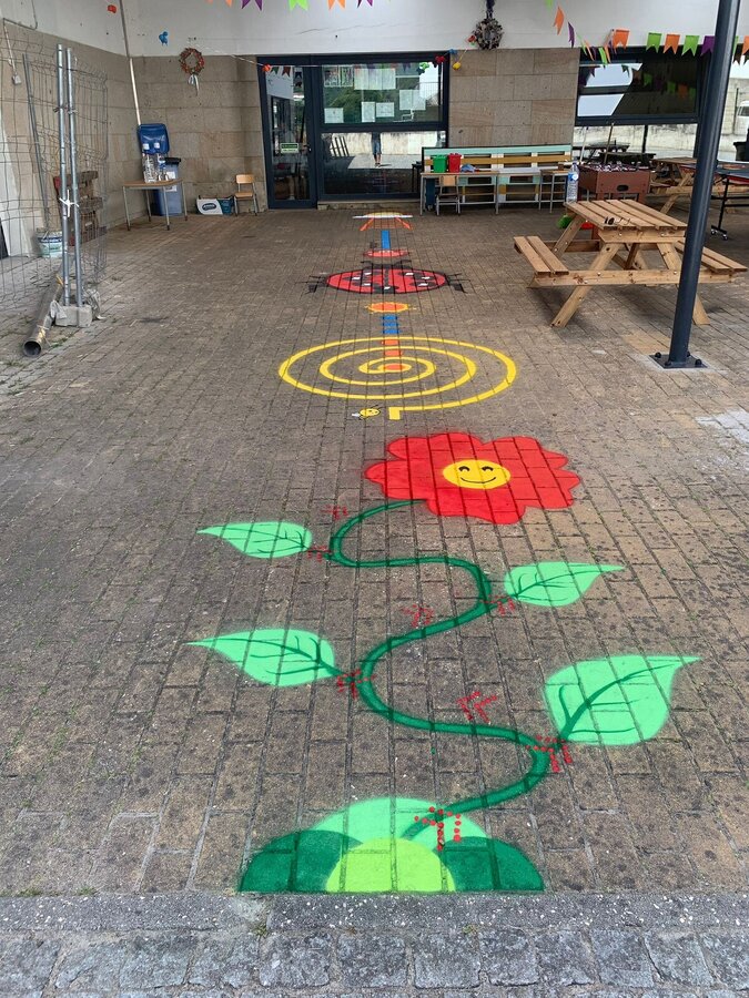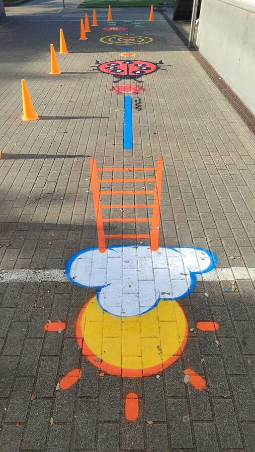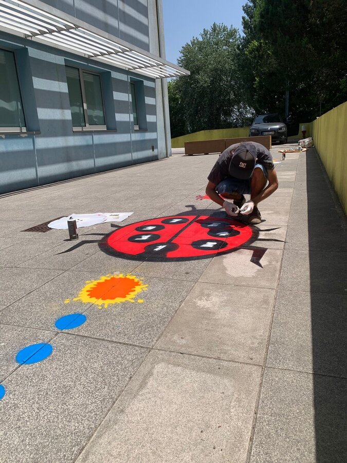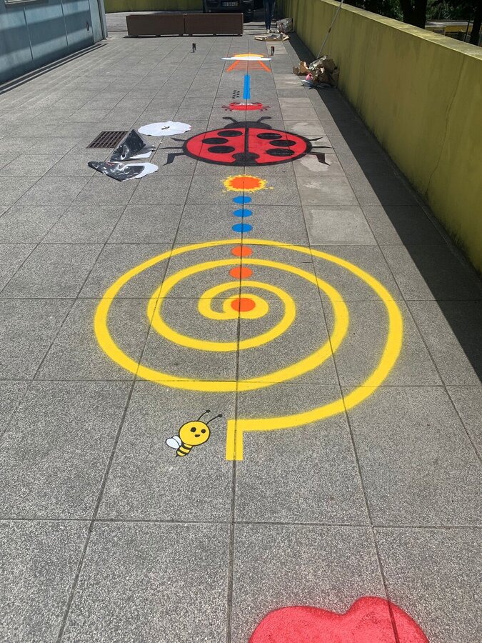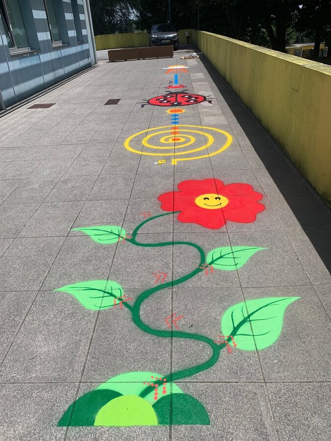 Os trabalhos incluíram a repintura de circuitos lúdico-pedagógicos e jogos de chão, assegurando melhores condições para a prática de atividades ao ar livre, em contextos educativos e de recreio.